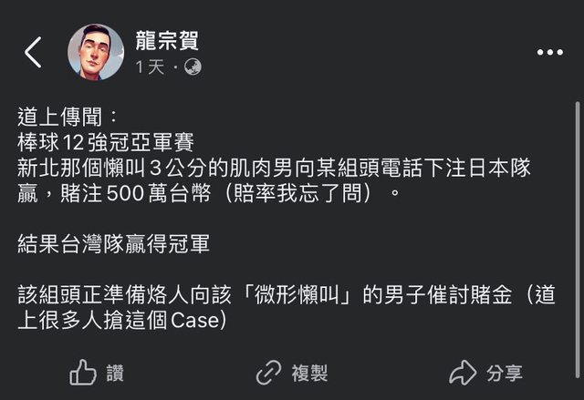 推 Eyrie: 看到台灣奪冠馬上臭臉 開始大談讓分在騙人 不是賭輸是什麼 11/27 23:05