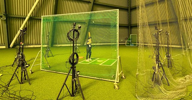 「在這裡,我們使用16台高速攝影機進行動作測量,並進行揮棒分析。」