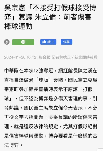 → Cohlint: 尾都是在罵館長搞非法球板,是吳硬要把合法運彩扯進來跟 11/30 16:56