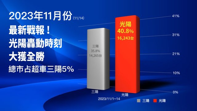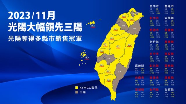 1.媒體來源:TVBS 地球黃金線 2.記者署名:謝明翰 3.完整新聞標題:Kymco台灣機車銷售反超SYM將於11月實現? 光陽:上半月銷量領先同業5 % 4.完整新聞內文: Kymco今年11月參與「2023米蘭車展」展出,車展媒體日第1天連續舉辦兩場國際發表會,包 括米蘭新國際展覽中心 (Rho Fiera Milano) 11展館發表CV-L6、Skytown、i-Tuber、Filly 50共4款新車,同日晚間接續在米蘭市中心IBM Studios舉辦全球首發Ionex電動機車解決方 案。隨著在米蘭的參展圓滿結束,光陽今(16)日更表示,國內機車市場銷售表現有重大斬獲 。 2023年8月,光陽以「GP125史上最低39,800元」方案引爆全台機車舊換新的換車潮,根據官 方資訊,自8月到9月中旬,全台經銷商總計湧入破6萬張訂單,一度使產能無法負荷,工廠 必須加班趕工,後續還推出「轉單其他國民車如大地名流、新豪邁」的活動來消化訂車潮。 面對雪片般的大量訂單,光陽承諾一定在年底前交付給所有車主。接著,Kymco又在9月帶來 第二波優惠,祭出New Many LED與Nice LED雙車款,以彩光特仕版搭配價格戰,再次於女性 與學生族群市場中獲得銷售成長,甚至還在9月份掛牌數超過主要對手,市占率逐漸回升。 到了9月26日,光陽集團董事長柯勝峯假台中麗寶賽車場舉辦4款全新白牌機種發表會,從RC S Moto 125與150、Many Moto 110、全新國民旗艦車款K1,到白牌旗艦運動速克達RomaGT, 盼望4款車能分進合擊搶占市場。 雖然4款新車在10月份掛牌數字沒有太亮眼,但光陽回應,其實新車都獲得消費者頗高的詢 問度,光是10月周休二日舉辦全台4場新車體驗試乘活動,就獲得將近2,000人前來試乘賞車 ;隨著新車陸續抵達門市,光陽10月20日起再舉辦「RCS Moto約你魔鬥」門市體驗試乘,目 前累積也達到全台2,000多位消費者親臨門市賞車試乘。 透過原有車款的價格戰、以及新車登場帶來的曝光效益,使Kymco與競品的競爭更加白熱化 ,市占率差距逐漸拉近。雖然光陽尚未於10月份逆轉重回單月機車銷售冠軍,以3,735台的 差距位居第2名,但進入11月份,根據官方提供最新銷售數字,上半月暫時以16,243台銷售 量領先同業的14,265輛,在14天內平均市占達到40.77%。 隨著GP125穩定交車、新車效益持續發酵,光陽先於9、10月縮小單月銷售差距,如今11月上 半月還暫時超車,或許Kymco真有機會在11月逆轉,重返單月銷售冠軍,讓董事長喊出的「2 024年油電雙料冠軍」目標能再進一步。 https://i.imgur.com/VqGHn8K.jpg