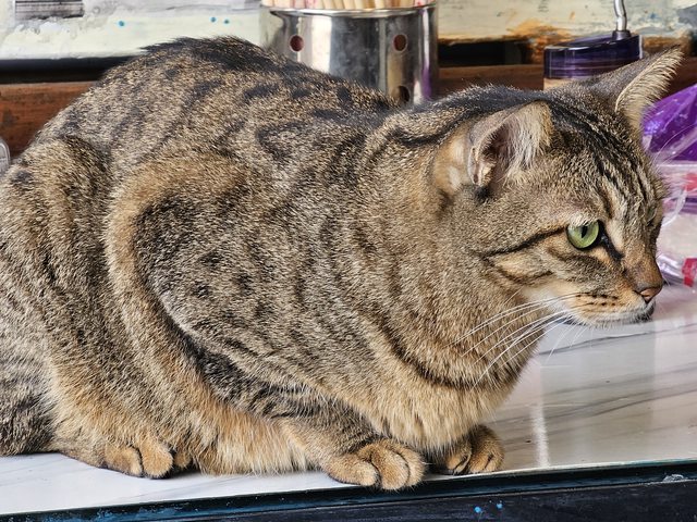 另一隻胖胖貓比較高冷一點,但沒關係,拿出手機用長焦來拍就得了