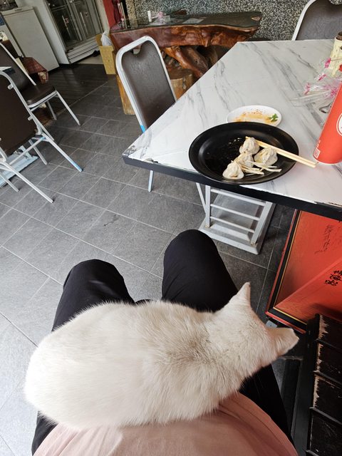 哎,會自己跳上來給嚕的貓貓真棒,老闆說白色的這隻叫咪咪,自從有次餵了牛奶後就賴