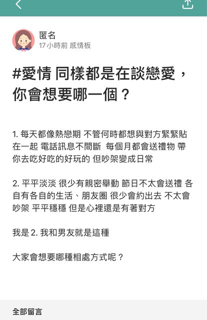 推 dcshoecousa : 為啥只有這兩個能選,不能每天熱戀,節日出去心裡都 09/08 14:53