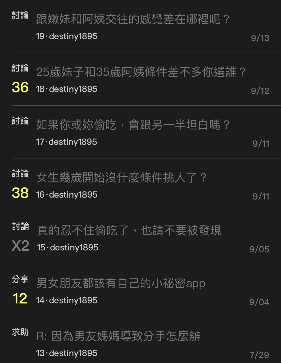 → phageT4 : 請問和肥宅 爺爺跟猛甲的交往經驗?09/13 22:26