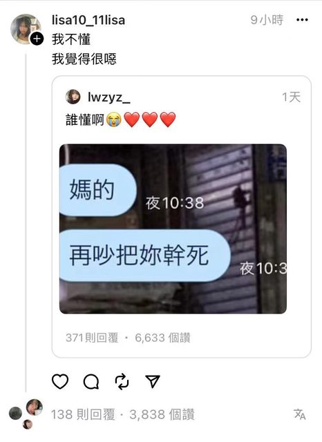 : 但是說幹死妳,有1/3風險被說很噁...