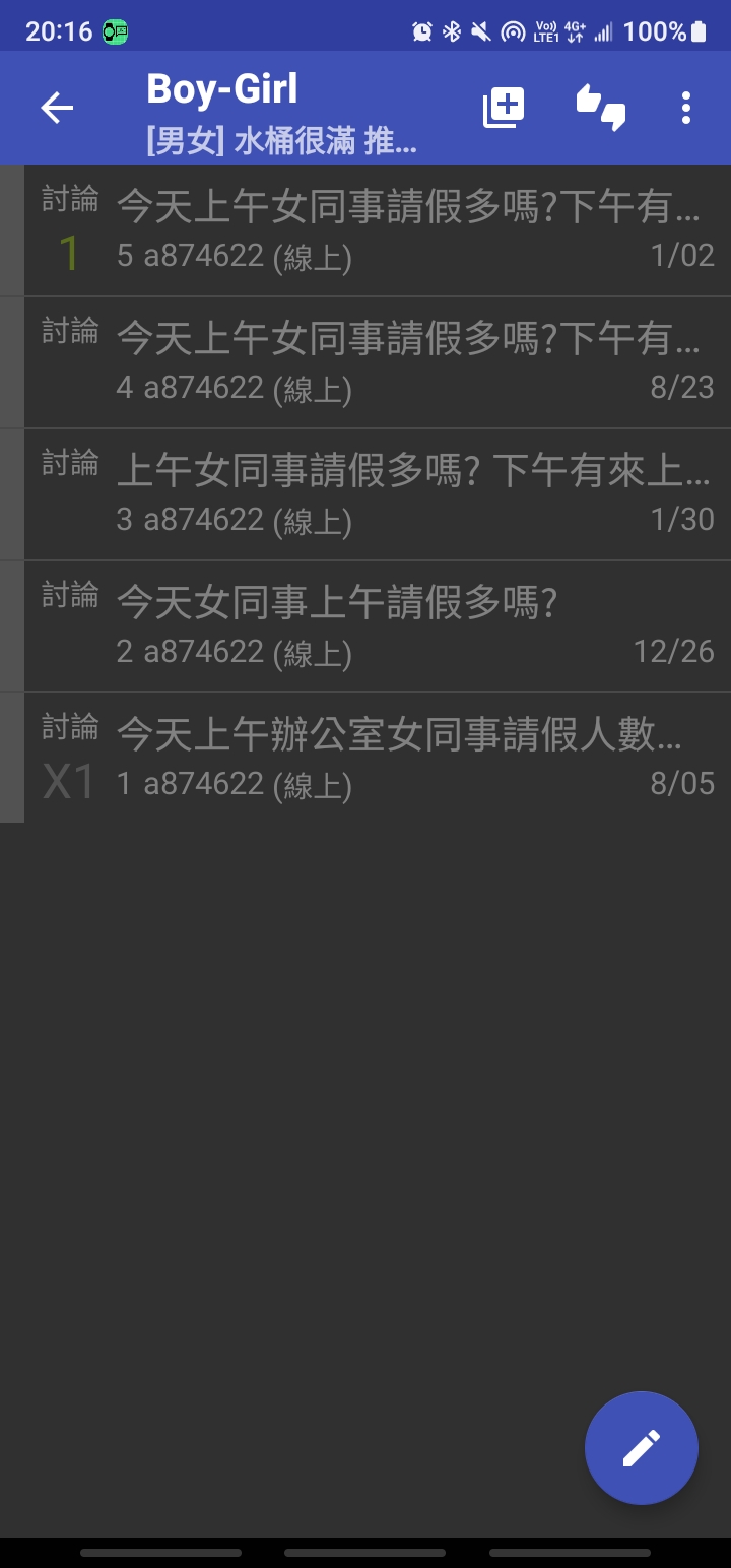 標題[討論]今天上午女同事請假多嗎?下午有來上班??