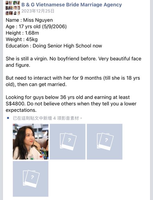 推 SIMONKID : 越南因為沒有處女情結所以處女才稀有,很多都15-6歲 01/12 17:26