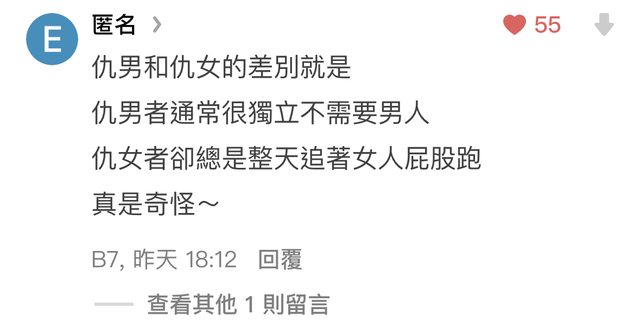 推 philandsam : 八卦仇女噁男還嫌少嗎? 沒事少去那種惡臭之地 12/08 11:43