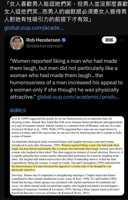 這樣不就代表….高富帥才是解決兩性關係的根本之道,雖然不是貶低其他兩性關係的技巧,但高富帥的看起來還是硬道理吧? 讓我想到翁立友和基哥的那張圖 -- Sent from nPTT on my iPhone 8 Plus -- ※ 發信站: 批踢踢實業坊(ptt.org.tw), 來自: 220.130.175.161 (臺灣) ※ 文章網址: https://ptt.org.tw/Boy-Girl/M.1705819241.A.375