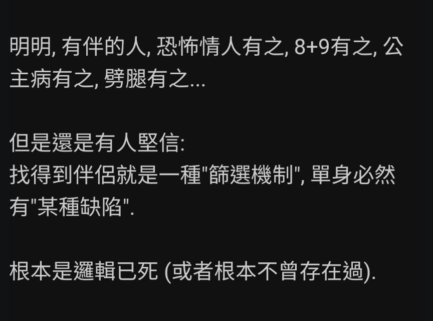 Ripper : 看起來像是被迫單身…周遭也有這樣的朋友,她們也 02/04 01:02