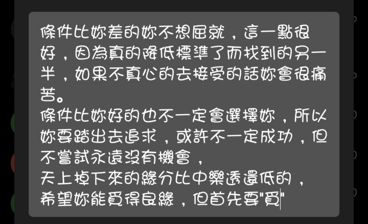 winter2683 : 寧缺勿濫就好 畢竟怪怪的人很多 02/04 02:33