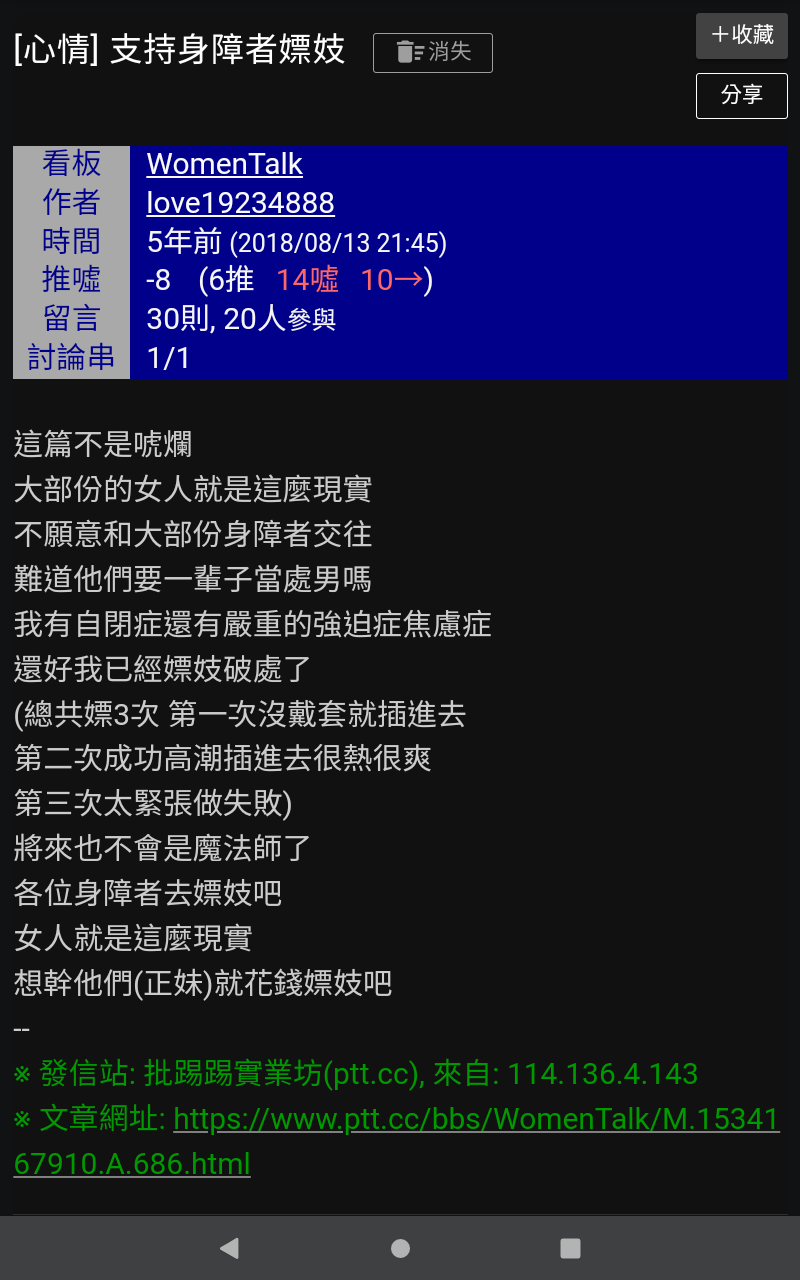 → imlitq : 排隊 而且 這種女生反而更瞧不起身障的男生05/23 11:28
