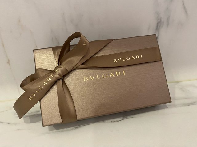 於是還是回去結帳了bvlgari長夾,櫃上的sales很親切,又拿出了兩瓶水招待,品牌的紙