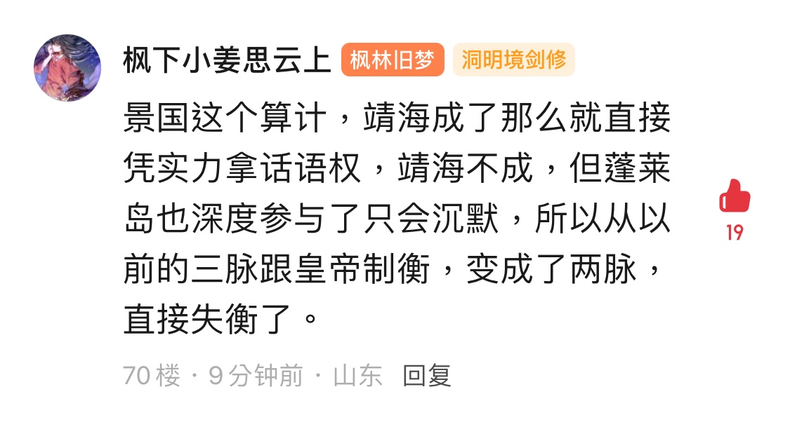 推 joe10337 : 這三章真不錯 把景國內部錯綜複雜的關係表露無遺 06/01 12:11