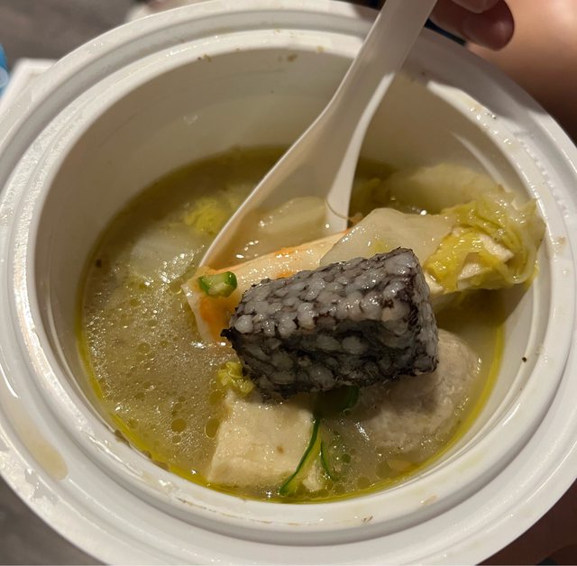 不過跟全家聯名,裡面料滿少的,高麗菜、凍豆腐、米血吸了湯底算好吃,口感跟味道蠻