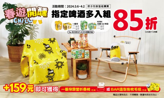 【活動名稱】:春遊開醺Chill!限定通路買指定啤酒多入組,享加價購「休閒好物」