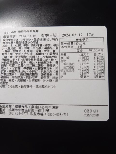 標題[商品] 711 晶華 海鮮奶油貝殼麵