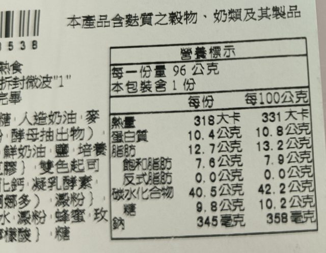 【規格/內容物/熱量】:96G(實際107G)318大卡