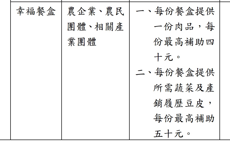 推 m13579: 農委會預算寫5億3830萬元捐助民間團體辦理幸福餐盒(這個 04/15 15:24