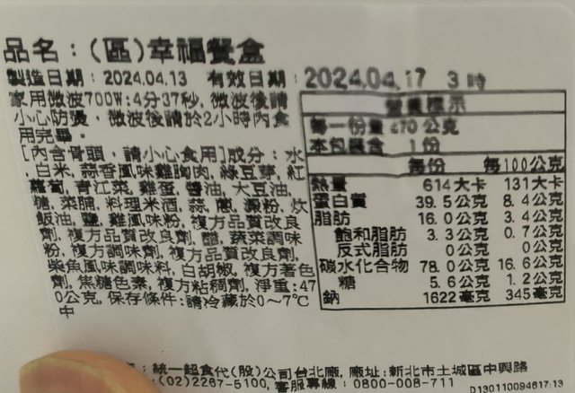 推 happyptter: 借問查的到全聯便當的營養標示嗎 04/14 23:33