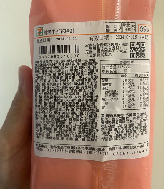 【商品名稱/價格】:醬烤牛五花捲餅/$69