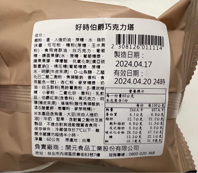【商品名稱/價格】:伯爵巧克力塔/55元