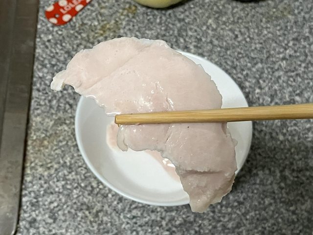 肉切片,也不知道是哪個部位的,還是雞身上的骨邊肉的邊角料,就是扣掉雞胸雞腿雞翅剩