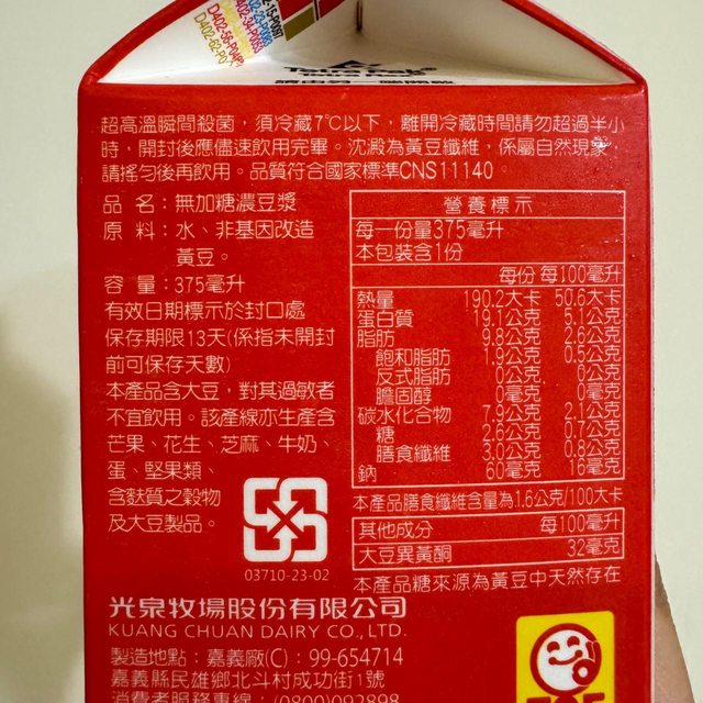 【商品名稱/價格】:光泉特濃5.1無加糖濃豆漿 /32元 (現在第二件10元)