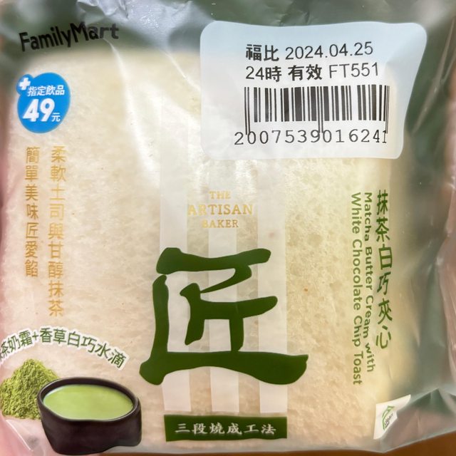 【商品名稱/價格】:抹茶白巧夾心土司/35元