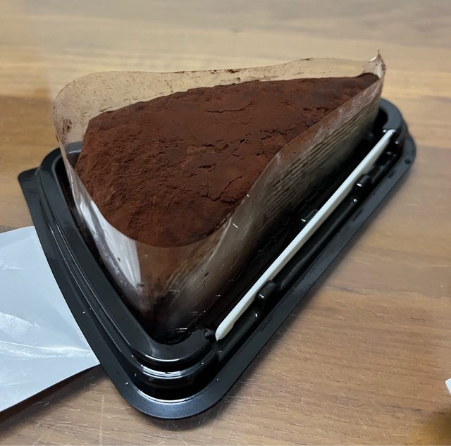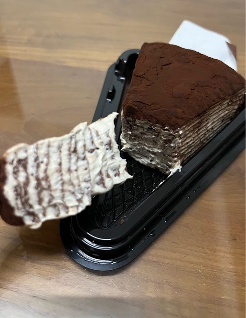 跟提拉米蘇蛋糕差不多,只是變成千層,隔層是巧克力口味,上面的粉比較濕不會散落一