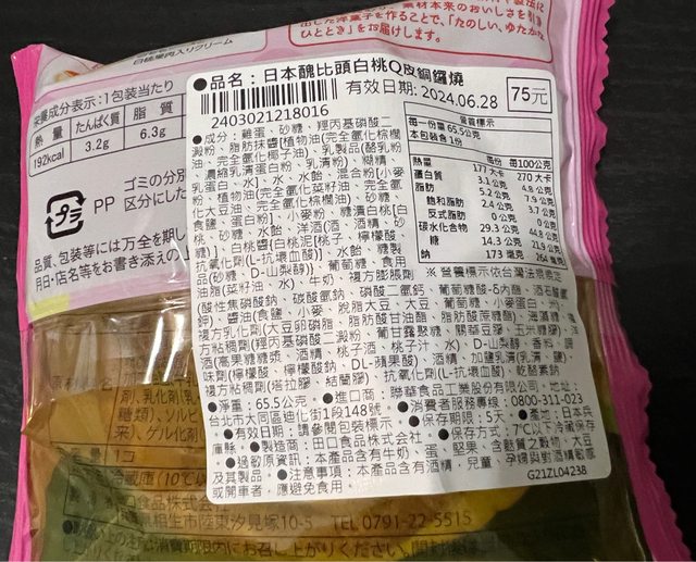 買了白桃銅鑼燒來吃看看