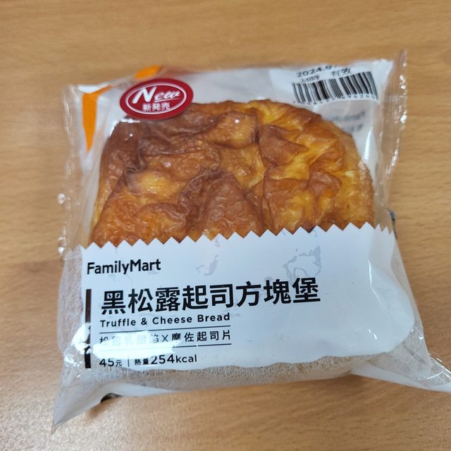 高級的,這次全家也跟進出了一款表面蓋起司片裡面也是松露乳酪的麵包