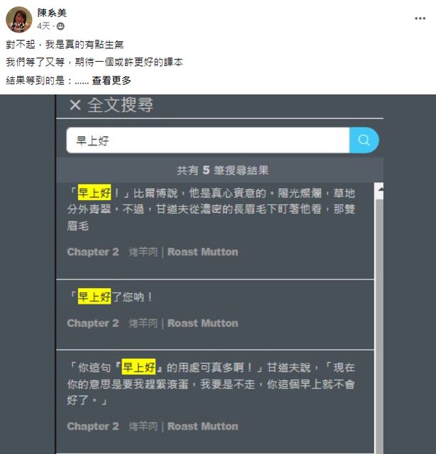 網一看,原是有讀者對《霍比特人》試閱內容出現「早上好」三字不甚滿意,特地發文指