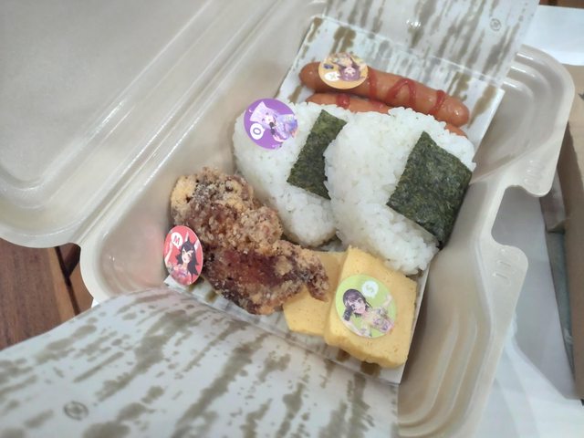 SMOK餐盒,香腸跟甜甜的玉子燒很好吃,然後我也吃到冷炸雞了,我跟peko貼貼(