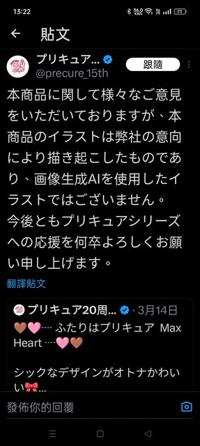 標題Re: [光美] プリキュア初代新周邊疑似使用AI繪圖
