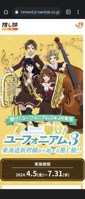 JR東海x響け!ユーフォニアム3』コラボ決定!