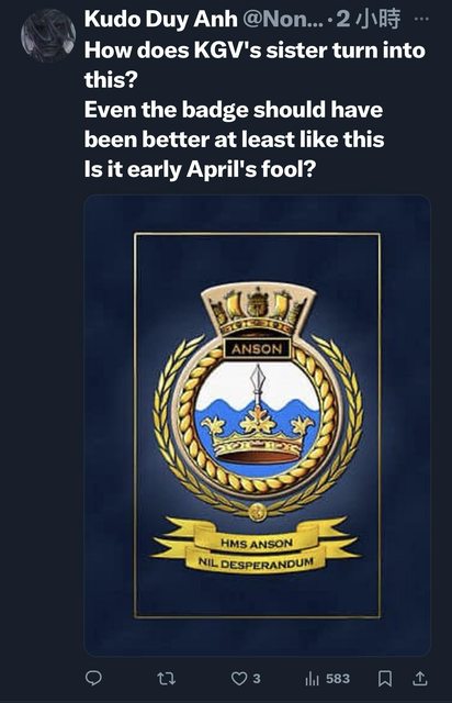 → nineflower: 官方:交辦醬,你去跟繪師說要畫戰艦安森。 03/23 16:55
