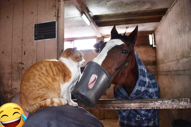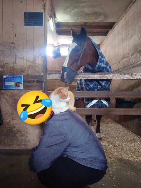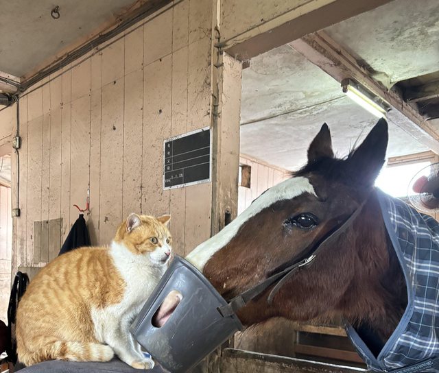 現在的怒濤根本是吸貓代言馬,從所屬的Northern Lake牧場收養流浪貓メト後