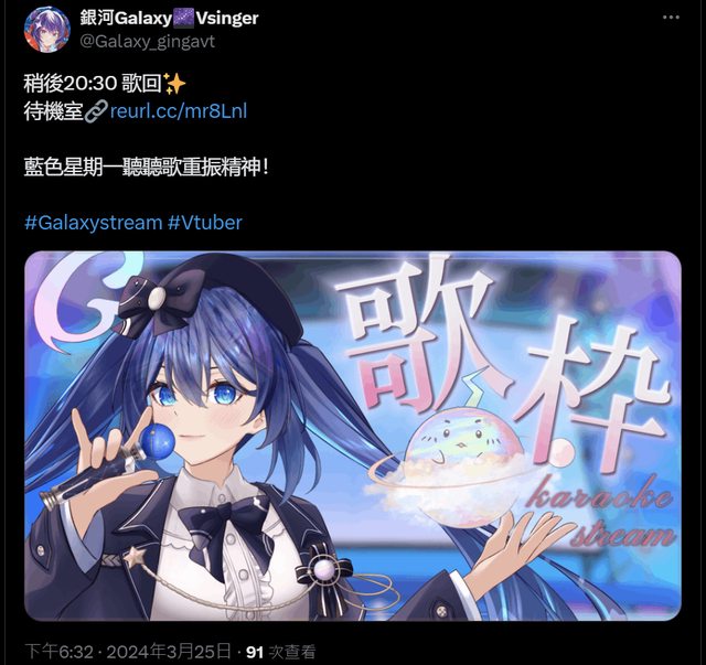 直播即將開始,想聽銀河唱歌轉換週一心情的人可以進待機室囉