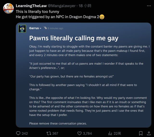 有推友在x分享看到的龍族教義2如果組全男隊會有的狀況