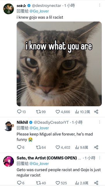 貼個推特上對五條吹捧米格爾(擁有不同於日本人的骨骼架構)的部分 因為很好笑