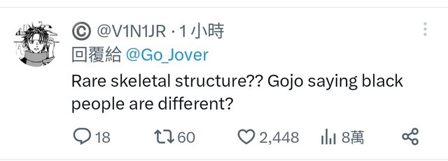 罕見的骨骼架構??五條剛剛是在說黑人與眾不同嗎?