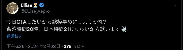 今天Ellise好像是因為晚點想玩GTA,所以歌回比較早開www
