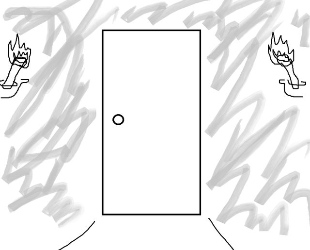 勇者在地下城或者魔王城準備打開一道看似陰森詭異、沒見過的樣式的大門,於是做好警