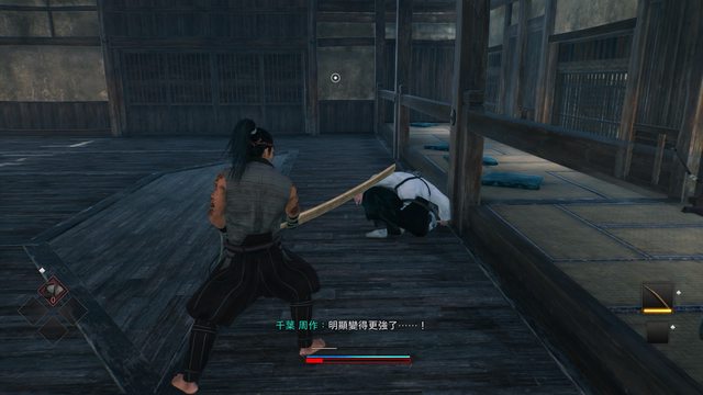 道場很狹小所以吃個幾刀,你就會被他逼到牆壁邊