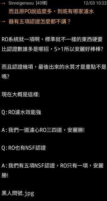 RO濾芯三四道,安麗濾芯只有一道所以安麗贏;NSF RO系統只有一項認證,安麗有五項所以安麗贏