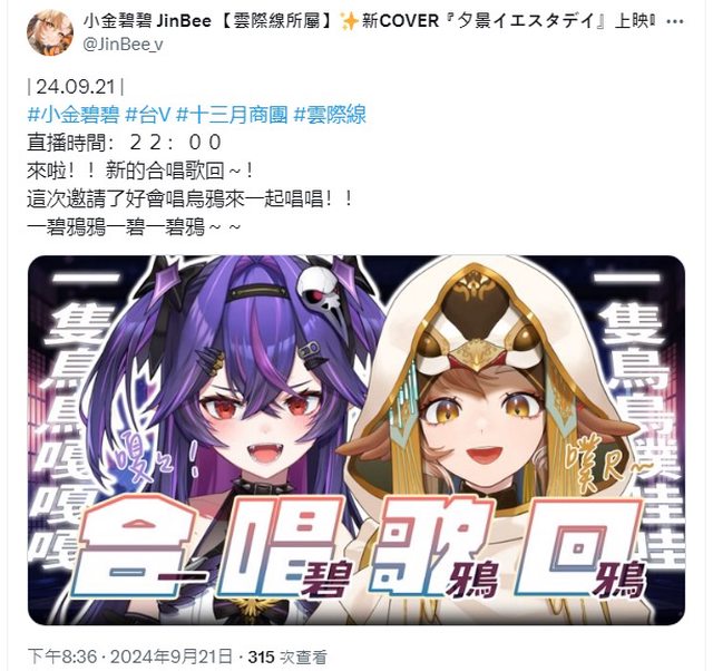 標題[Vtub] 小金碧碧 合唱歌回 ft. 諾鴉・奈菲墨 VerseLink