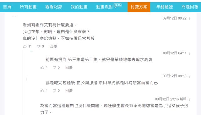 11集的評論區: