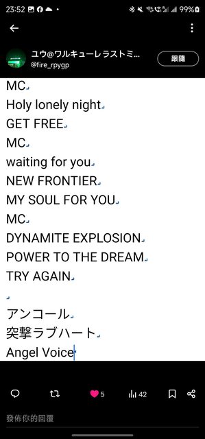 明年還有女主唱一起的演唱會,雖然不能到場,但期待FIRE BOMBER演唱會成功