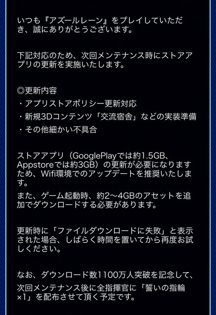 ストアアプリ(GooglePlayでは約1.5GB、Appstoreでは約3GB)の更新が必要になりますた